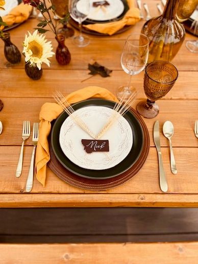 Adorn Montana offers everything that you need for beautiful place settings and tablescapes. We have an extensive collection of disposable or reusable dinnerware, flatwear, drinkware, and serveware. We also offer a wide variety of charges/ place mats, name cards, and napkin notes.