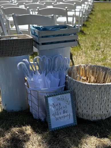 Memorable events are all in the details! From a hand painted white wagon to coordinating throw pillows, and custom sparkler buckets, we have all the details covered.
