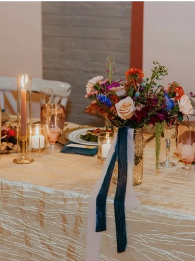 Gold styling and coordinating packages are our most popular choice averaging $5,000. This price varies depending on guest count and decor choices. This package offers lovely rental options and brings that dream wedding or event to fruition.